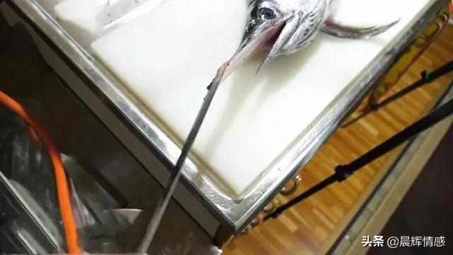黄喉用盐搓洗几次,冲洗干净后切片。