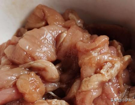 1、瘦肉切片,用生抽,蚝油腌制30分钟。