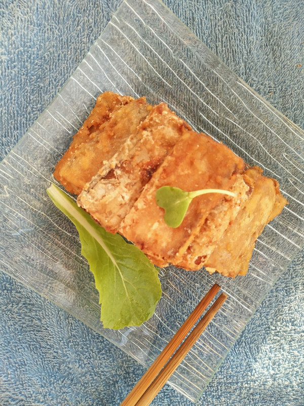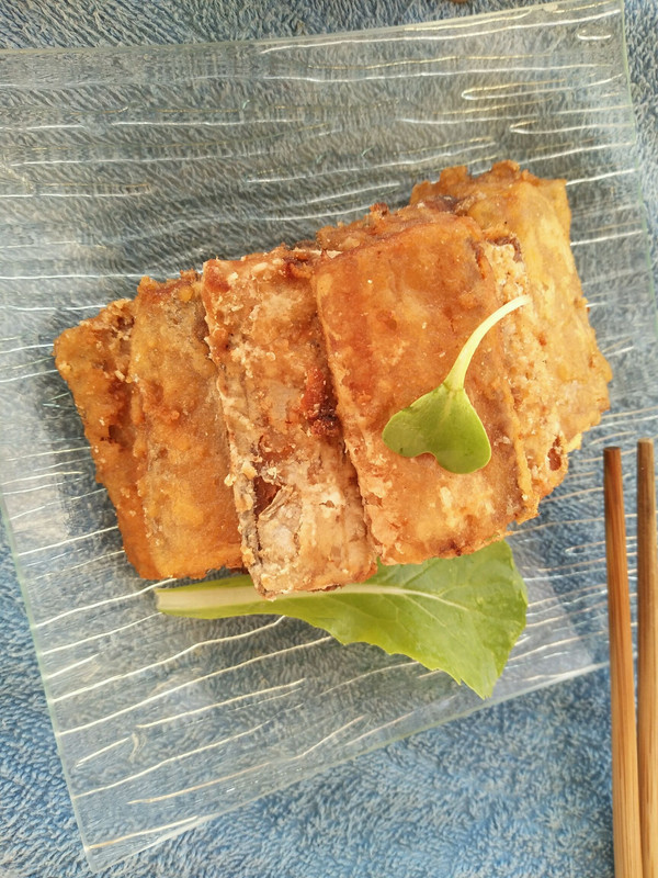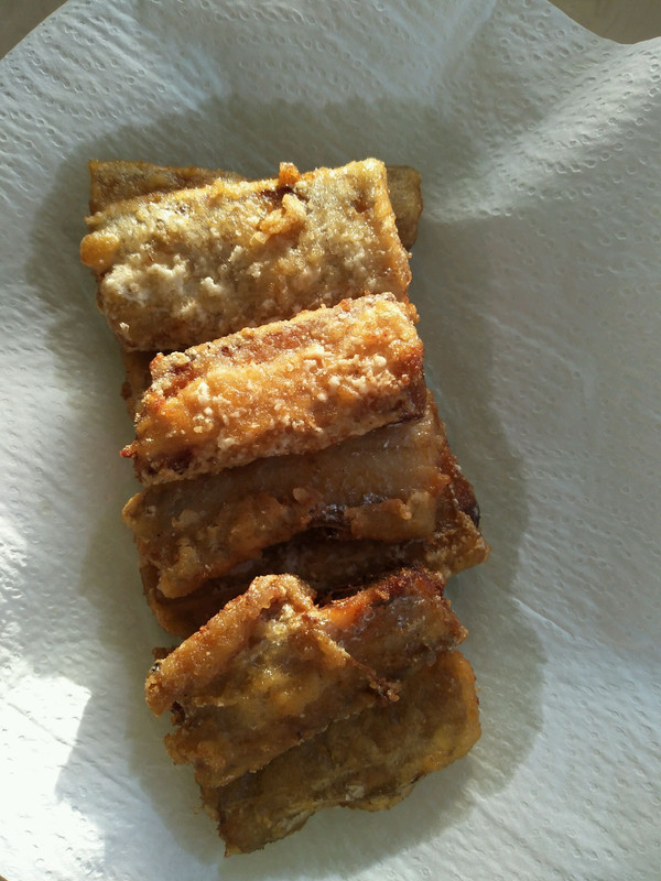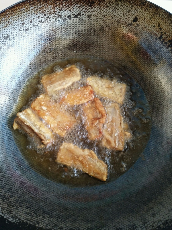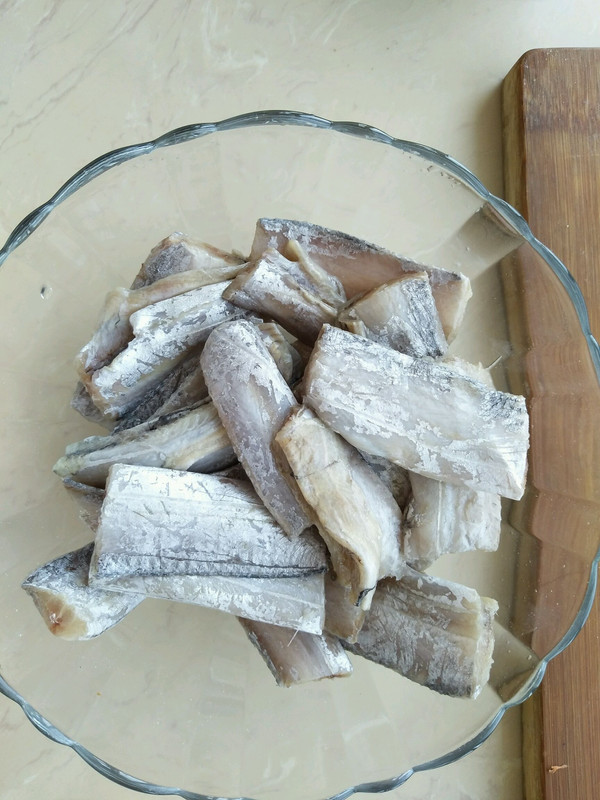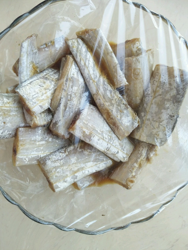 先放入一个带鱼段,试一下油温,如果起大泡了代表油温可以了,陆续放入带鱼段。