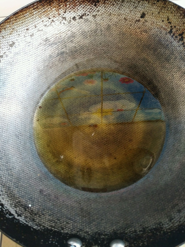 锅里放油烧热,烧到七成热,锅里开始冒烟就可以了。