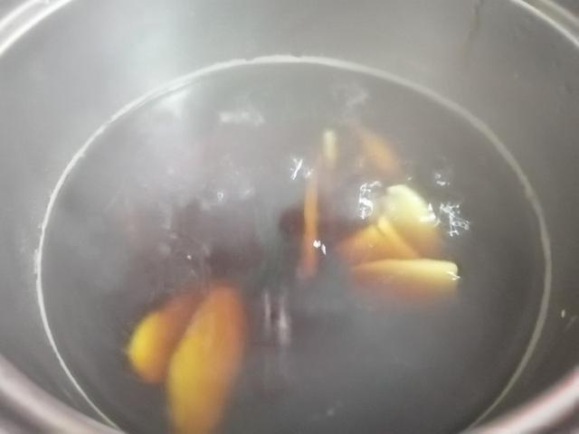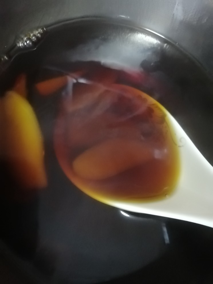 4、等一会儿,看到水中有谈谈的黄色,证明姜已经入味的时候。