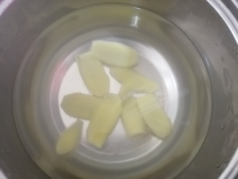 锅中沸水滚后加入姜片煮10分钟