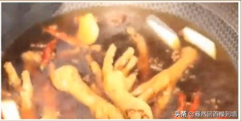 8、紧接着下入泡好的鸡爪,盖上盖子,小火卤制20至30分钟。