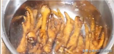 3、锅中倒入宽油,油温要高,依次放入鸡爪,开大火炸制。