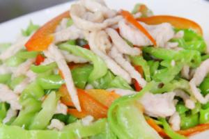 辣椒炒肉可谓是荤菜中最常见的一道家常菜了,通常是由猪里脊肉切成条,再与青椒翻炒。