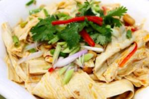 如果觉得青菜、白菜等素菜不适合招待客人,那么腐竹就是一项很好的选择,清炒即可。