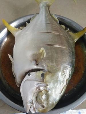 1、金鲳鱼最好买400克到500克之间中,太大了肉质会比较粗,影响口感。买的时候请卖鱼老板帮忙杀好。