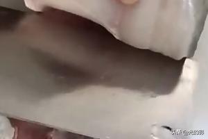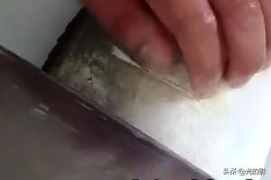 2、在用切菜刀把金鲳鱼表面的粘液刮掉,用手扶着鱼头,稍用力来回多刮几遍,那些粘附物虽然不影响口感,但严重影响视觉,务必刮干净。
