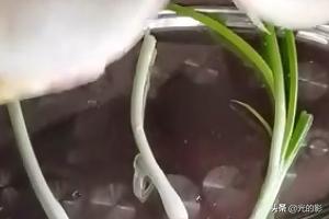 8.鱼蒸好后,夹去生姜和葱段,倒掉盘子里的水;