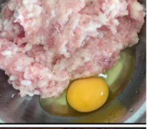 准备一个干净的盆子,里面放入羊肉馅500克,鸡蛋80克。
