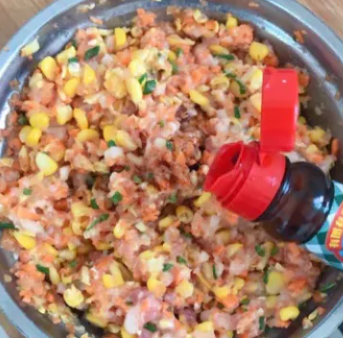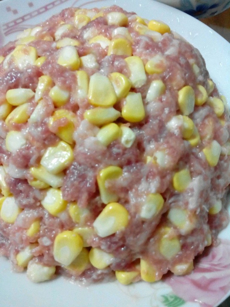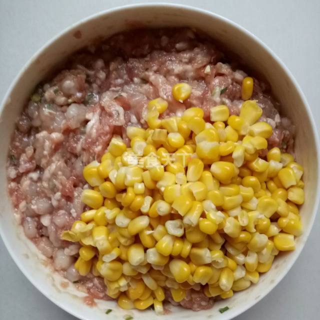 直接把150克的玉米粒放在羊肉馅500克当中。