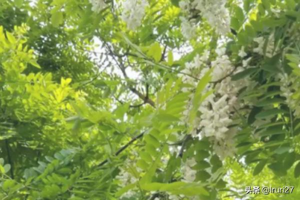 3、一嘟噜一串的槐花散发着诱人的清香,有槐花的日子空气都是甜的,就是不吃槐花,坐在槐花树下嗅着槐花香也是一种享受啊!可惜今年槐花飘香的日子不在家,没能和爱人一起摘槐花,挺遗憾的。