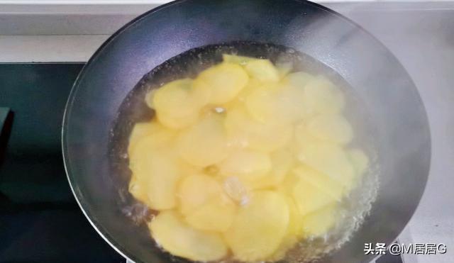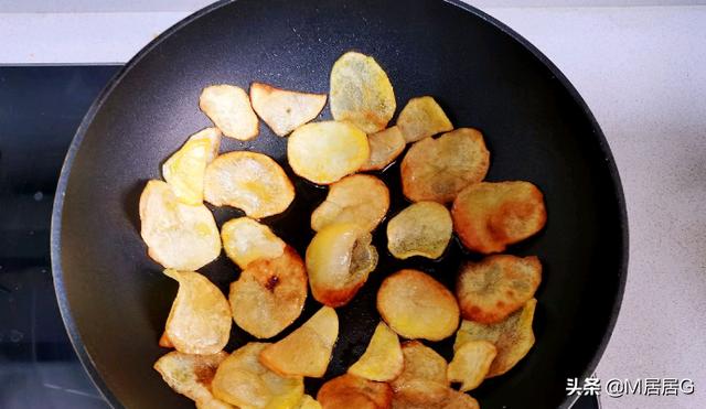 5.放入土豆片煎至两面金黄。