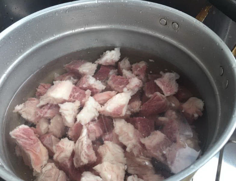 锅中放入清水1000毫升,接着加入牛腩500克,小火炒熟五分钟即可。