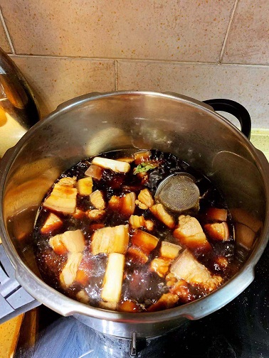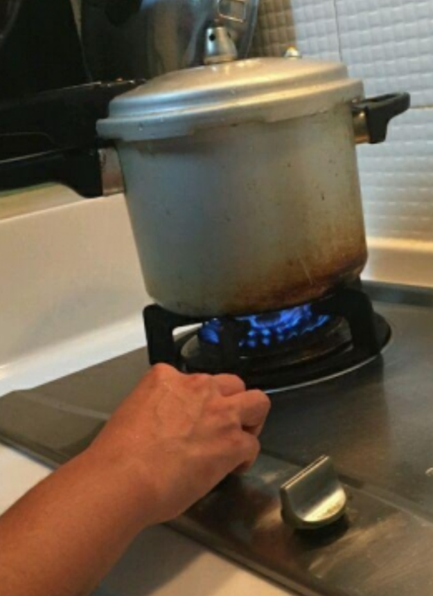 接着把高压锅扣上盖子,小火焖40分钟即可。