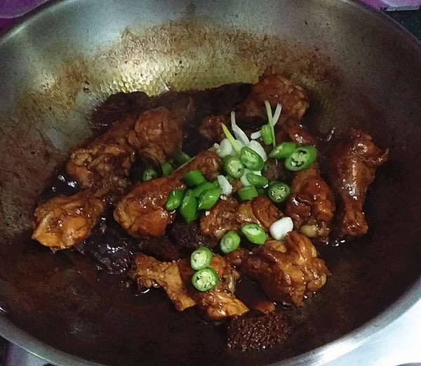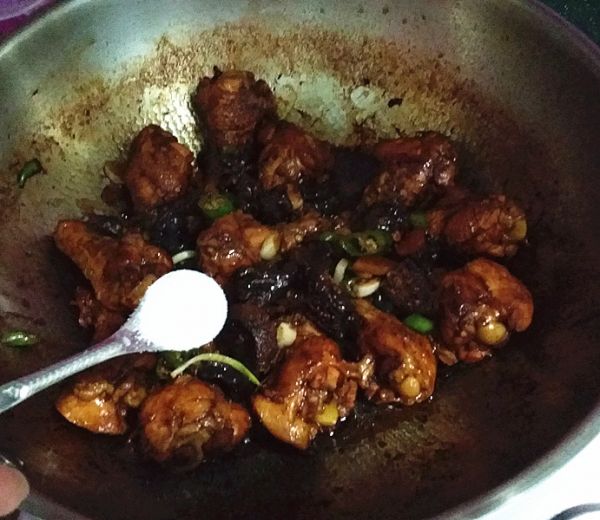 炖至鸡翅根渐烂时倒入老抽,转中大火