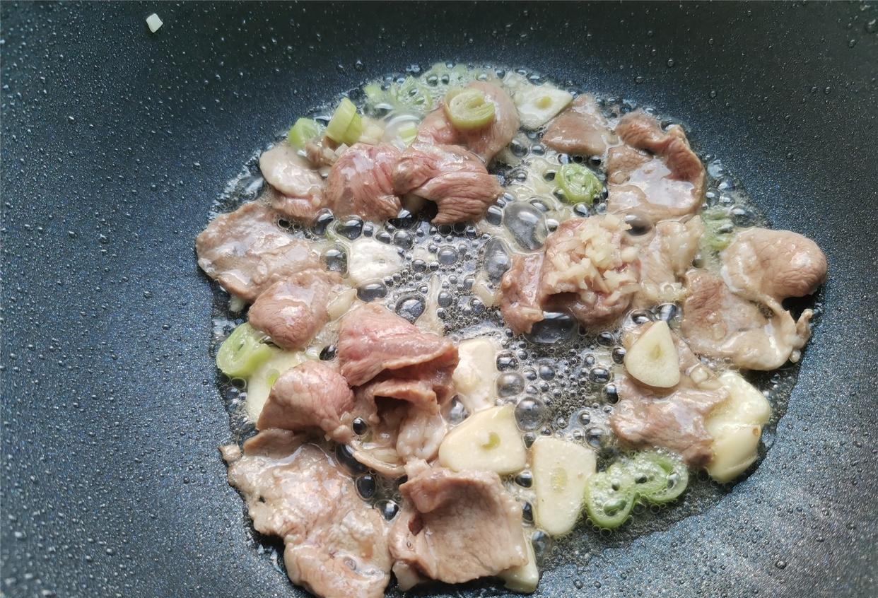 把食材放进去翻炒均匀放入调料调味加点热水焖2分钟
