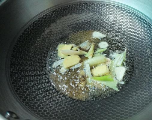 另起锅倒油爆香葱姜蒜、桂皮和八角