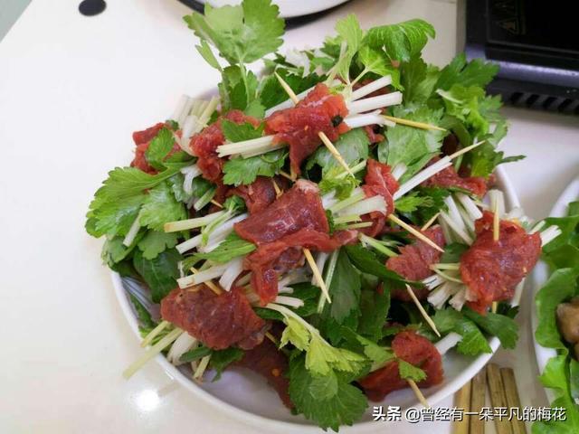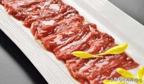 2.嫩牛肉。嫩牛肉是把牛肉切片后拌上麻辣调制成的,因为不同品质的牛肉口感差异大,这就要看你选的什么火锅店了。