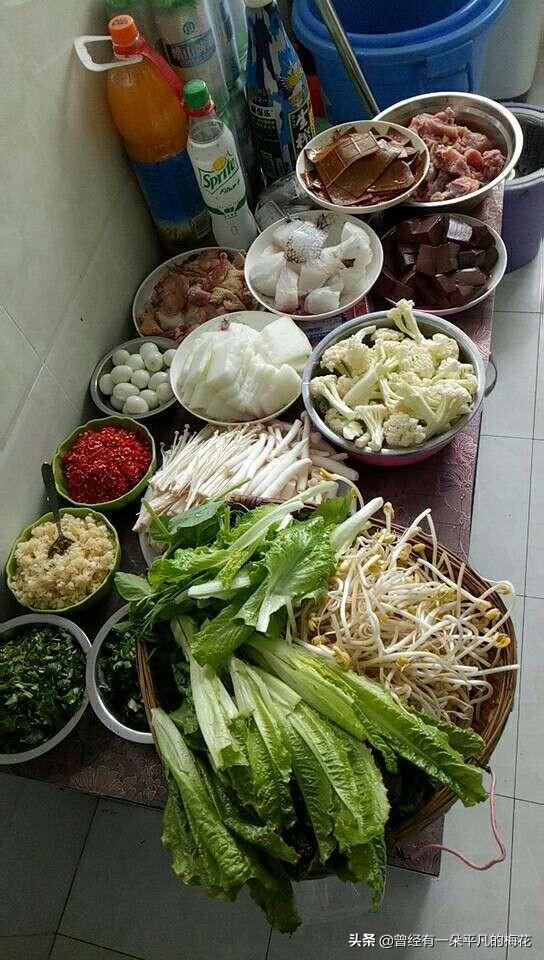 羊肉、牛肉、猪脑、蟹棒、百叶、黄喉、鸡腿菇、金针菇、土豆片、白菜、生菜、蒿子、茼蒿、菠菜、油菜、冻豆腐、鲜豆腐、鸭血豆腐、猪血豆腐、豆泡、宽粉丝、粉丝、杂面、揪面片、鲜虾、新蒜、海带、香菇