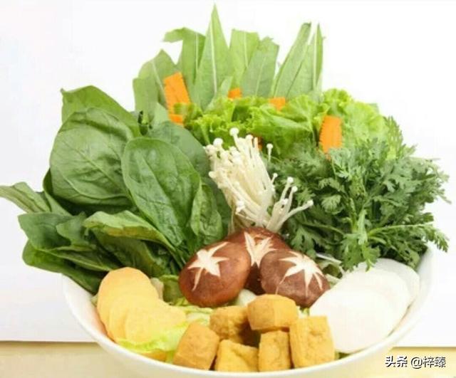 素菜类的:生菜、茼蒿、莴笋叶、菠菜、娃娃菜、豆苗、豌豆尖、海带、豆皮、腐竹、水豆腐、豆泡、炸腐竹、各种菌菇