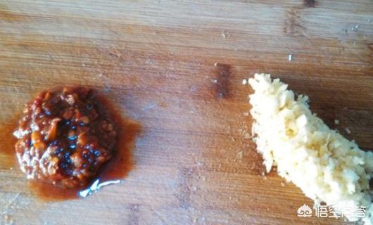 4、豆瓣酱剁细,姜和蒜瓣切成末。