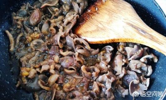 6、锅里加入植物油,烧到九成热,倒入鸡胗爆炒,炒好出锅待用。
