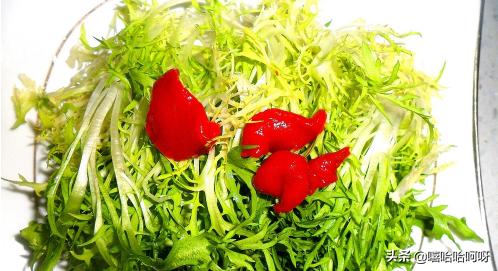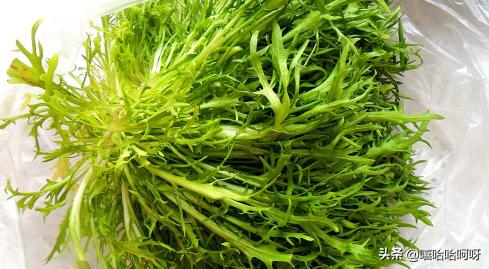 2、将摘干净冲洗好的苦菊,尽量控干净水分。