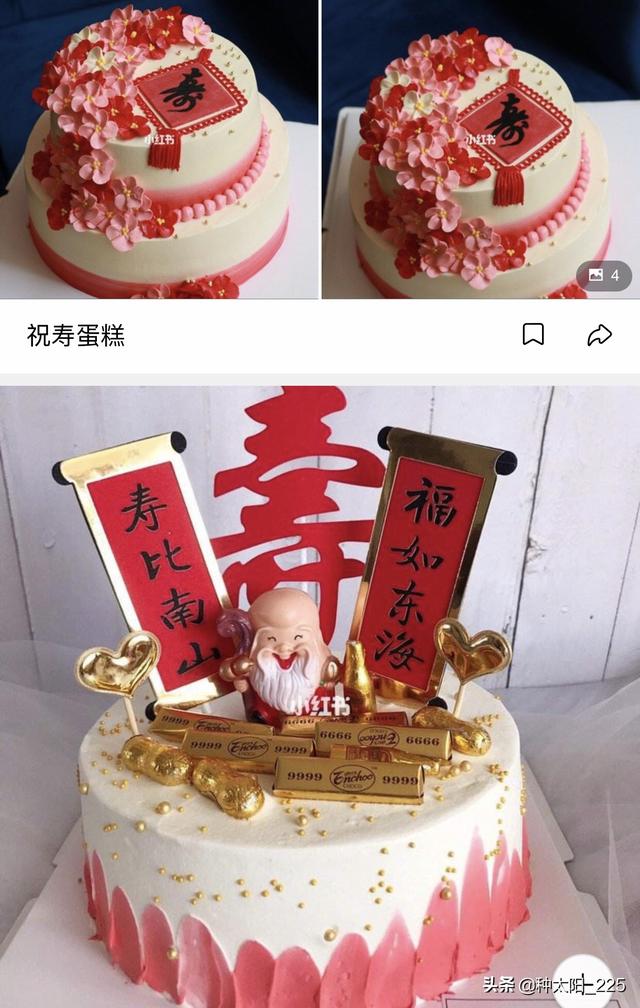 老人的蛋糕 祝寿建议大一点 12-20寸左右 毕竟人多;老人喜欢喜庆的蛋糕 寿桃图案、祝福语等很讨喜,主要是家人都在 一起去给老人祝寿 他们自然很开心!