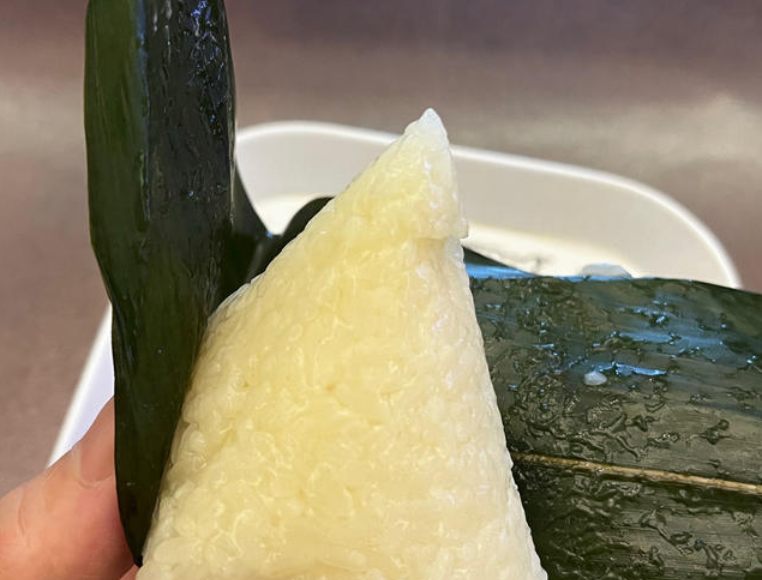然后再拿出甜粽子50克剥开,如下图所示,甜粽子就做好了。