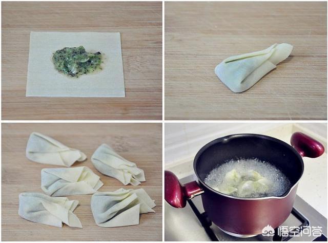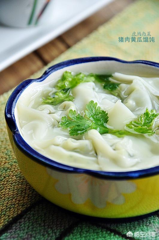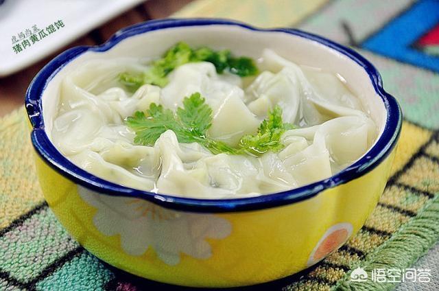 是起源于中国北方的一道民间传统面食,用薄面皮包肉馅儿,下锅后煮熟,食用时一般带汤。将黄瓜搅打成泥跟肉馅、木耳搭配着包馄饨挺好,一口咬开,清香四溢的,毫无油腻之感。馄饨制作快,简单易学,我拍了三种馄饨的包法在下面,供参考。