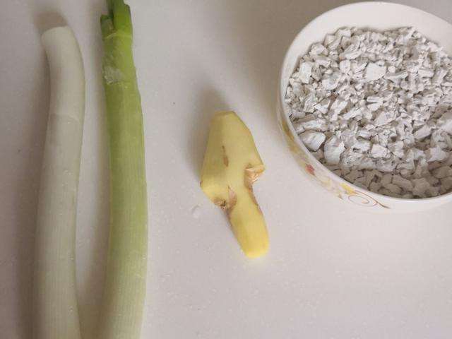 准备葱,姜,红薯淀粉。必须用红薯淀粉,最好这种块状的淀粉