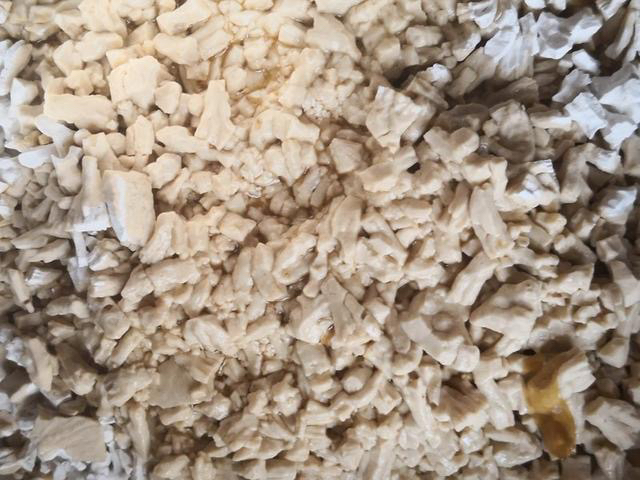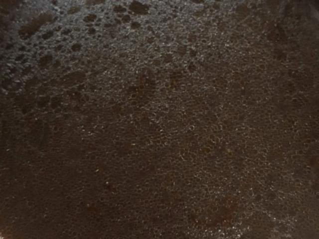 用的排骨汤做的,排骨汤和淀粉的比例是1:2.5。即淀粉一碗,排骨汤2.5碗。排骨汤用最细的漏勺过滤,保证汤没杂质。