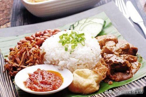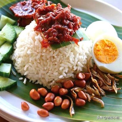 2、椰浆饭 椰浆饭,听名字以为是甜甜腻腻的,其实不然,这是一道被马来西亚人民当做早餐的食物,吃起来有椰子香味,还有点辣。椰浆饭得名是因为米饭是泡在椰浆中,然后再蒸,这样的方式让米饭香浓可口,而且不会太甜,一般会配上鸡肉、黄瓜、花生米以及调味的蘸料,可以根据自己的口味调味。
