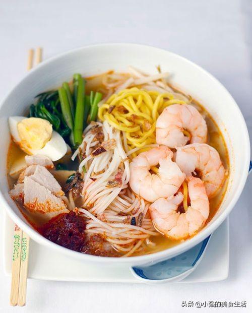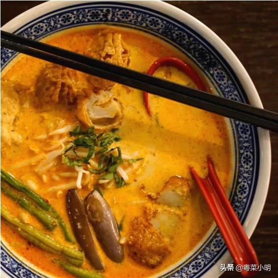 5、叻沙面 叻沙是一种特色汤底,将多种食材如虾米、辣椒、椰汁、香茅等煮在一起,熬制成汤,是马来西亚和新加坡文化与华人文化相结合下的美食产物,也是娘惹美食中最负盛名的。叻沙通常与面、粉一起食用,辣中带一点甜,汤底较浓稠,味道比较重。