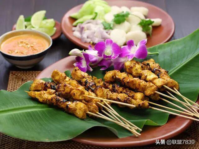 与泰国一样马来西亚是绝对是吃货的天堂。这里的美食也非常多元化,形形色色辛辣的马来食品、色香味俱全的中餐、南北印度风味美食以及娘惹菜系等,绝对让游客眼花缭乱。 1、沙嗲 沙嗲,通俗的说就是马来西亚版本的烤串,是马来西亚最著名的小吃之一。一般会将卤过的牛肉或鸡肉串成肉棒,然后在炭火上烧烤,最重要的就是蘸着沙爹酱,再配上黄瓜、洋葱和马来饭团一起食用。沙嗲的味道偏甜,带微辣,喜欢的人非常喜欢,不喜欢甜辣味道的游客会觉得味道比较奇怪。