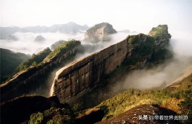 冠豸山风景区,位于龙岩市连城县城东1.5公里处,景区以旖旎多姿的丹霞景观闻名于世;既有群峰峥嵘的丹霞群山、宏伟壮观的丹霞石墙群、粗犷阳刚的丹霞赤壁,也有深邃幽长的丹霞峡谷、千姿百态的丹霞洞穴。