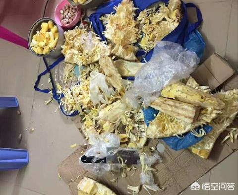 4、当然,很多人不知道,菠萝蜜上包全找出来后,里面的丝也是好东西,也可以找出来炒着吃。
