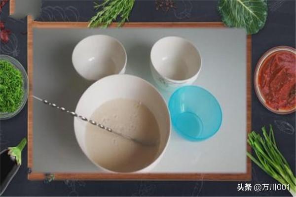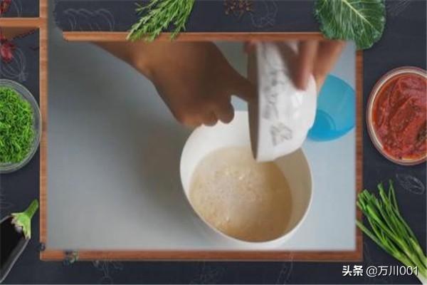 酵母加入水中,放一些糖,静置15分钟。