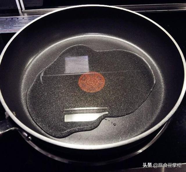 往锅里倒入适量的油(这是煎豆腐!!!不是炸豆腐!!!所以油不用放太多的。)
