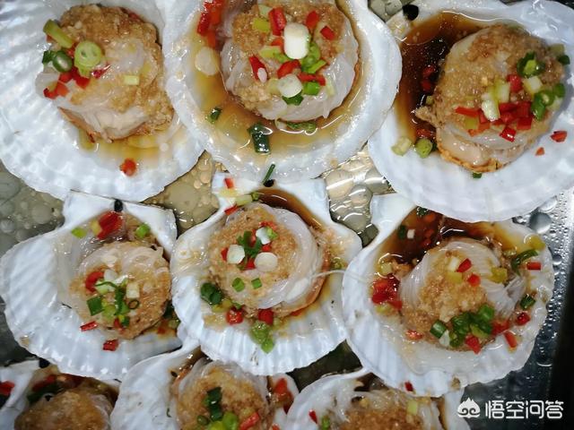 5 然後滚水下鑊蒸8-10分钟6 撤葱花和辣椒于扇贝上,淋上滚油即成。