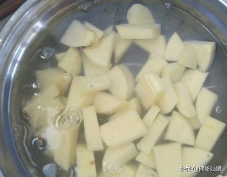 4、土豆去皮切块,未下锅时放在清水中泡着,可以去除多余的淀粉。