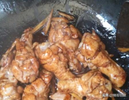 7、加入酱油,鸡翅根上色。
