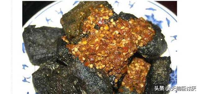 3、油炸臭豆腐:将青矾放入桶内,倒入沸水用棍子搅开,放入豆腐浸泡2h左右,捞出豆腐冷却。然后将豆腐放入卤水内浸泡,春、秋季约需3~5个h,夏季约浸泡2h左右,冬季约需6~10个h,泡好后取出,用冷开水略洗,沥干水分,再将茶油全部倒入锅内烧红,放入豆腐用小火炸约5min,一待焦黄,即捞出放入盘内,用筷子在豆腐中间钻一个洞,将辣椒油、酱油、麻油倒在一起调匀,放在豆腐洞里即成。