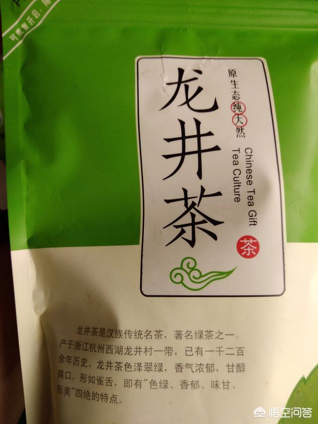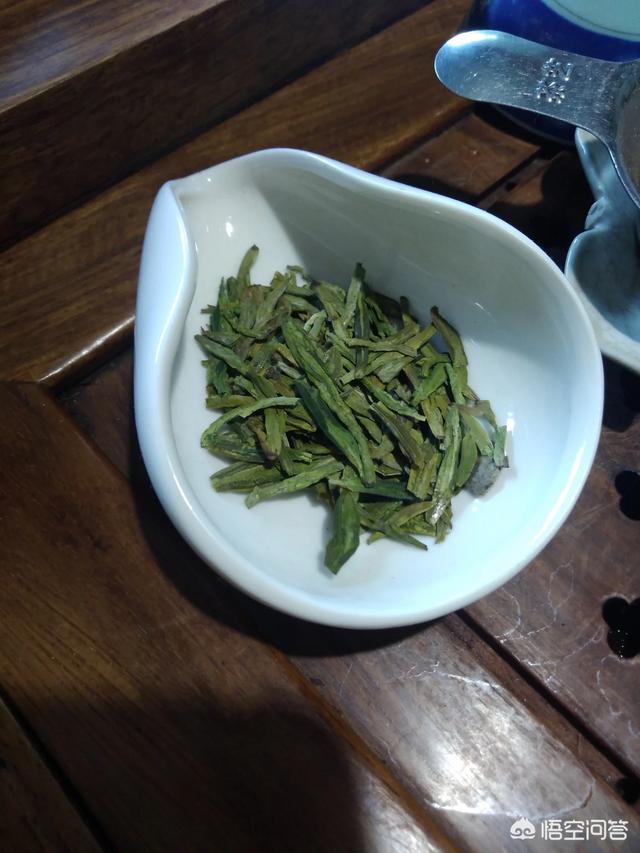 龙井,属于绿茶,绿茶茶叶保留了鲜叶的特征,比较嫩,不耐冲泡,最多泡三次。