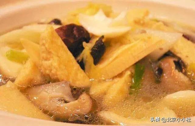 【材料】香菇25克,竹笋15克,金针110克,姜5克,味精1克,精盐3克,清汤300克。
