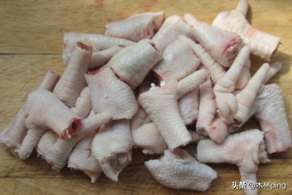 1、首先凤爪洗净后剁小块,然后再用凉水冲洗几遍,去除骨头里边的血水。