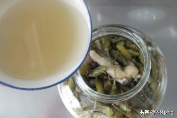 准备一个够大的带盖冰箱盛器,将一瓶泡山椒里的液体全部倒入,也就一点点,放入部分泡椒,喜辣的多放,放大约1/5。加饮用水至盛器的一半,加入白醋,白糖,盐,料酒调味。 味道要足,按个人喜好偏酸偏甜自己掌握,但要够咸,否则不入味。放些花椒和一个八角,几个厚姜片,有助于去腥提味。