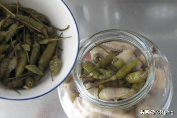 凤爪出锅后投入凉水中冷透,可以多过几遍水去油。然后放入对好的泡椒水里,要能够被汁液浸透。盖上盖子,放入冰箱。泡两天后拿出来挑出凤爪和泡椒就可以了。