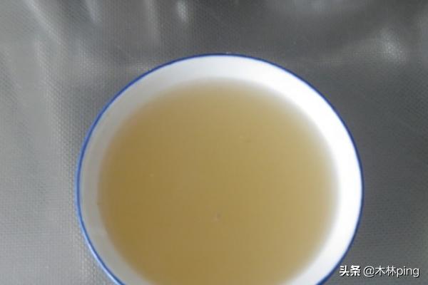 5、把泡野山椒的水倒入碗中,加入适量白糖、白醋、盐、鸡精、凉白开水搅匀。糖、醋、盐的比例根据个人口味调整,调制的过程中可以尝尝,达到自己满意的口味。